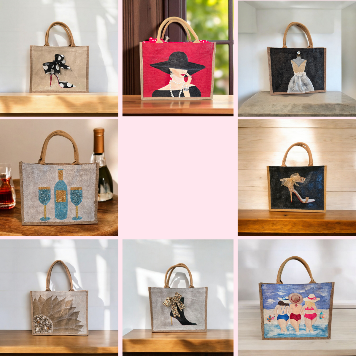 Step into style with our hand-painted shoe design tote bags. Each tote...