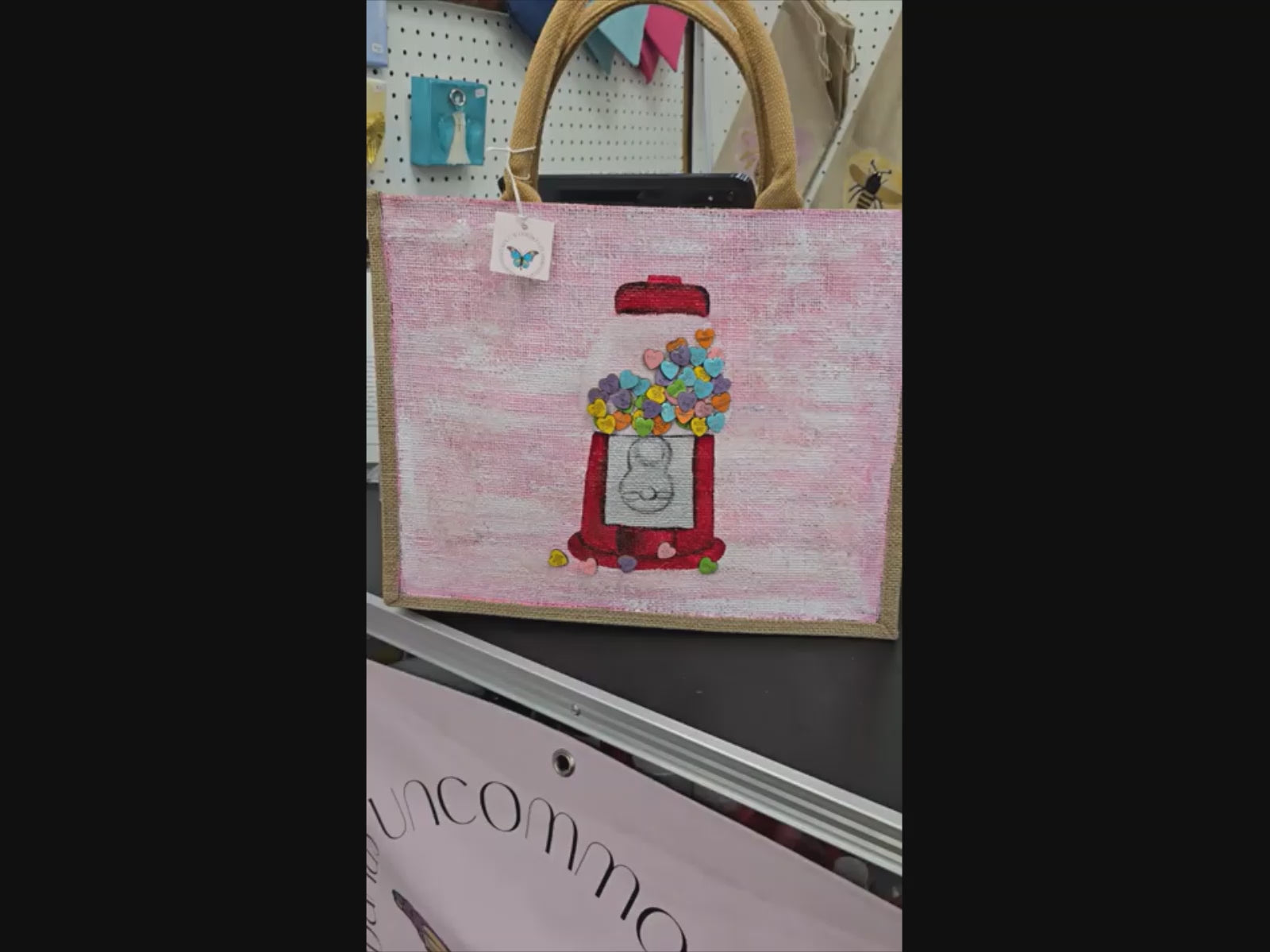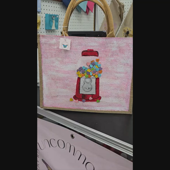 Bubblegum Conversation Heart Valentine Tote Bag – Hand Painted Pink Jute Bag